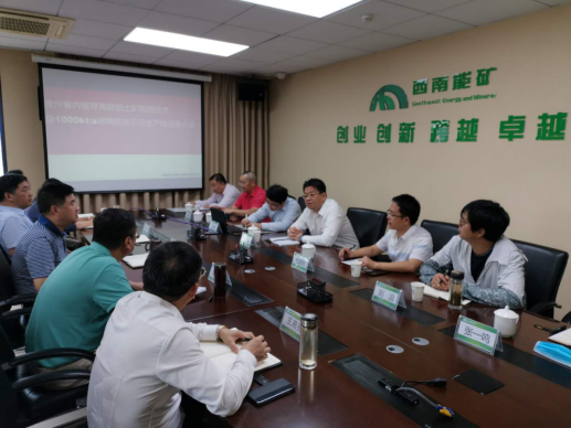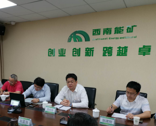本网讯(学院办公室 张一鸣)为助力我省十大千亿级工业产业的发展,激发校企合作潜力,6月2日下午,院长苏向东率队赴西南能矿集团交流贵州省内赋存高硫铝土矿脱硫技术,洽谈建设1000kt/a焙烧脱硫示范生产线的相关事宜。西南能矿集团董事长赵震海、总经理韩平、副总经理仇雅鸣等对苏向东院长一行表示欢迎。