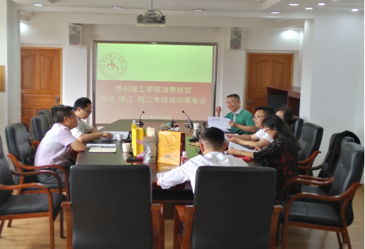 本网讯(工会 杨泽龙/图文)2020年6月28日,贵州理工学院消费扶贫沿河和德江以及榕江专场活动筹备会在第一会议室召开,副院长胡兴灿主持会议,德江、沿河两县的代表及中国足球彩票:脱贫攻坚专班、后勤处和工会的负责人参加了会议。