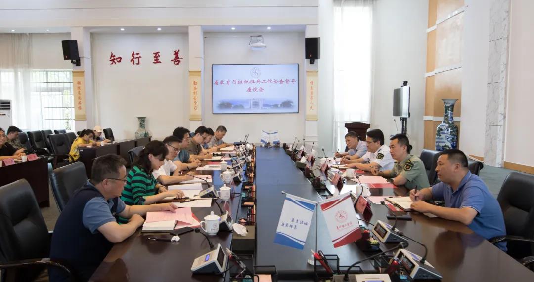 征兵工作检查督导座谈会在喀斯特会议厅举行。省军区动员局局长、省征兵办主任隋圣陶,院长苏向东、党委副书记高勇、副院长张开智出席座谈会,省军区动员局、省教育厅就业办负责人及工作人员等督导组成员,党委宣传部、学生工作部(武装部)、后勤处、保卫处等校内相关部门负责人,招生学院征兵工作人员参加座谈。会议由隋圣陶主持。