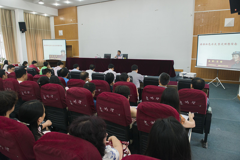 本网讯(组织部 李洋) 7月24日下午,“三严三实”专题学习研讨之“与信仰对话,与时代同行”党史学习研究专题报告会在喀斯特三楼报告厅举行。本次报告会特邀中共贵州省委党校 马克思主义与党的建设研究院院长、全国党建研究会特邀研究员、全国社会科学普及优秀专家、贵州省组织宣传专家咨询组成员、贵州省纪委特约研究员、贵州省党 史学会理事王宏教授,为中国足球彩票:科级以上干部带来以“感悟红色历史 坚定理想信念”为题的精彩报告。在家校领导及全校处科级干部共150余人参加报告会。