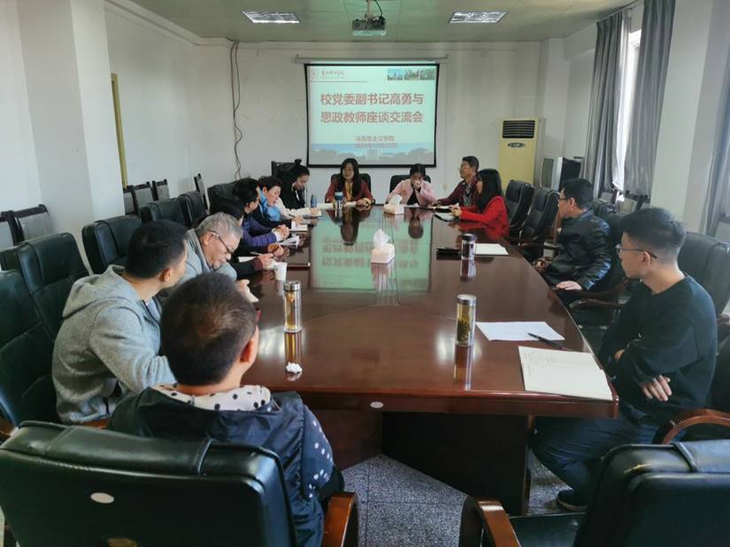 本网讯(马克思主义学院 李娜/文 张建军/图 )10月22日上午,党委副书记高勇到马克思主义学院与思政课教师进行交流座谈,当日无教学任务的思政课教师参加了会议。