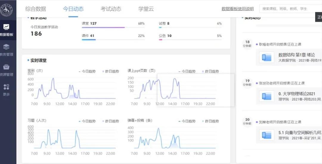 据统计,3月1日共有70门课程开展了线上授课,授课教师达100人,共100个班级通过雨课堂、QQ直播、腾讯会议、钉钉等软件和平台进行线上学习。