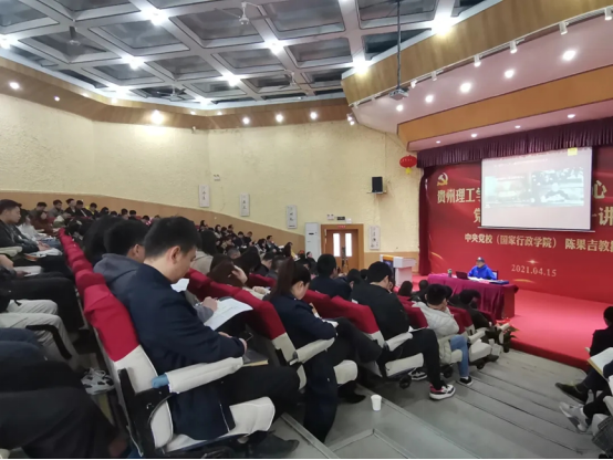 为扎实开展党史学习教育,进一步提高党员干部党性修养,切实做到学史明理、学史增信、学史崇德、学史力行,不断从党史学习中汲取奋进的力量。4月15日,贵州理工学院 “学党史 明初心 知使命”党史大讲堂在逸夫小报告厅举行,中央党校(国家行政学院)陈果吉教授应邀作首场专题辅导报告。校党委委员曾羽、苏向东、吴次南、胡兴灿、林长松、张开智、左柏州、李朋,校长助理莫立坡出席讲座。报告会由校党委副书记吴次南主持。