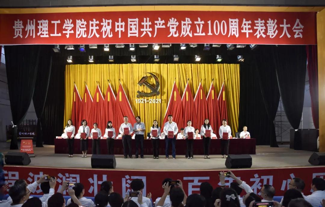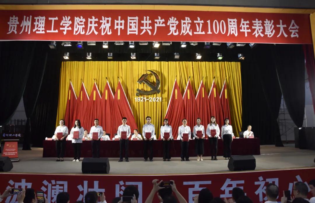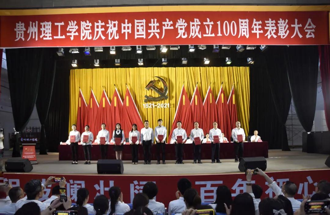 本网讯(党委组织部 王丽莎)7月2日下午,贵州理工学院庆祝中国共产党成立100周年表彰大会在逸夫大礼堂隆重举行。大会回顾党的百年发展历程和总结学校建设发展取得的成就,表彰一批校级优秀共产党员、优秀党务工作者和先进基层党组织,激励全校各级党组织和广大党员从党的百年历程中感悟思想伟力,从榜样模范中汲取奋进力量,进一步解放思想、与时俱进、团结拼搏、扎实工作,续写学校高质量发展新篇章。