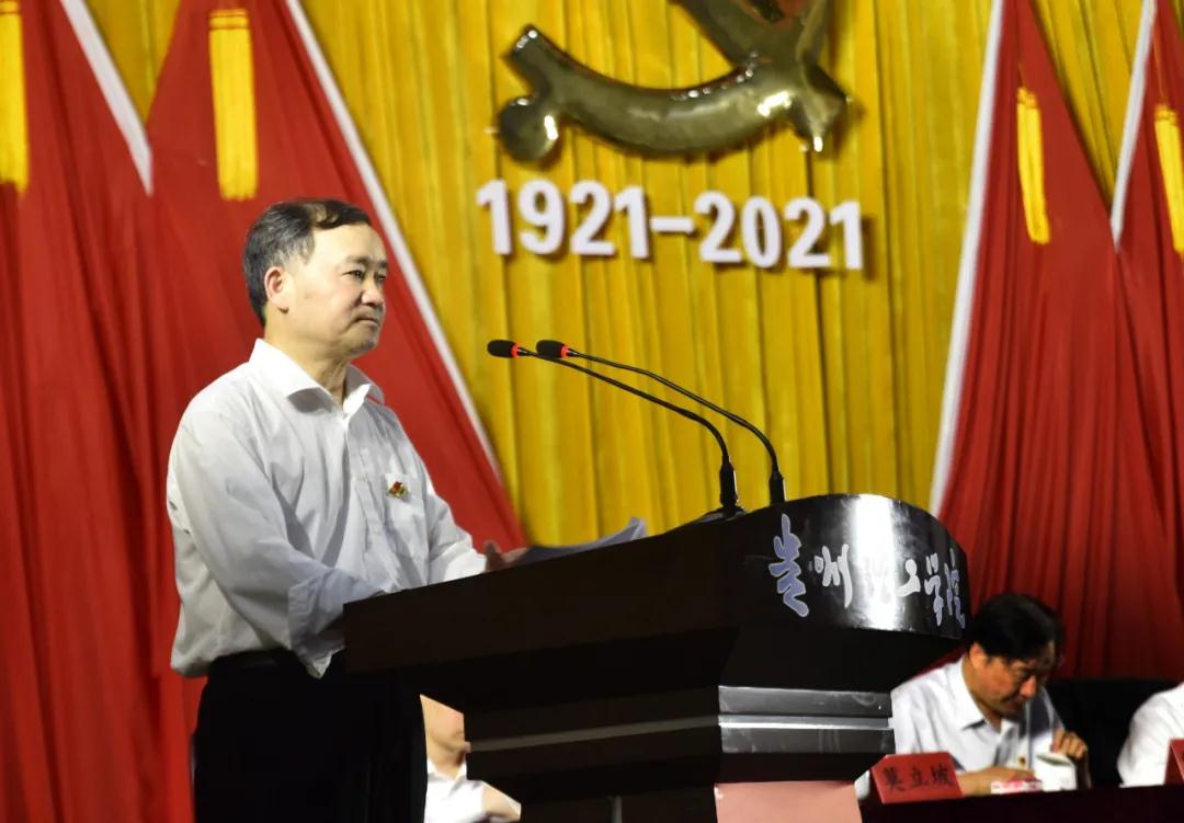 党委书记曾羽代表学校党委向各级党组织和广大党员致以节日的问候,向为全校各项事业辛勤付出的各位前辈和同志表示衷心的感谢,向受表彰的先进集体和优秀个人表示热烈的祝贺,向荣获“光荣在党50年”纪念章的老党员致以崇高的敬意。他表示,受表彰的先进党组织和个人是全校各级党组织和广大党员中涌现出来的优秀代表,他们来自不同岗位,从事不同工作,在学校人才培养、科学研究、合格评估、新校区建设、脱贫攻坚、疫情防控以及乡村振兴等各项工作中,用实际行动诠释了党组织的良好形象和党员干部的时代风貌。