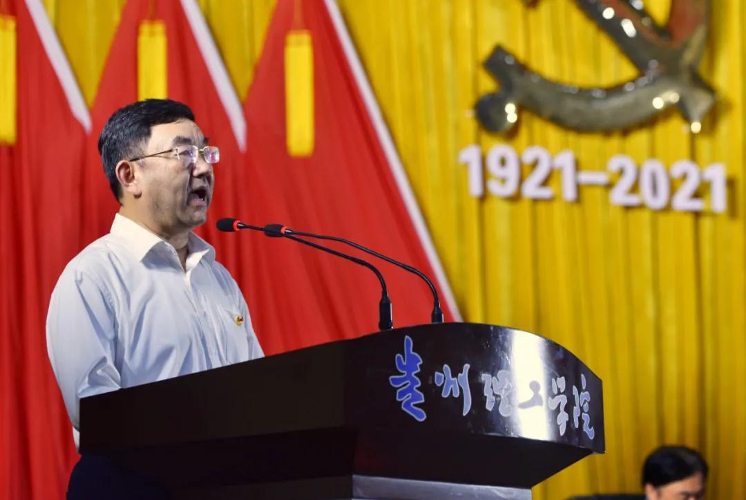 在庆祝建党百年的庄严时刻,学校党委号召全体共产党员要以习近平总书记在庆祝中国共产党成立一百周年大会上的重要讲话精神为契机,发扬伟大建党精神、长征精神、新时代贵州精神,坚持真理、坚守理想,践行初心、担当使命,不怕牺牲、英勇斗争,对党忠诚、不负人民。在大有可为的“十四五”时期,求真务实,苦干实干,以争先创优的良好精神状态,保持一往无前的奋斗姿态,全力推进新增硕士学位授予单位和硕士学位授权点建设,争创一流工作业绩,不断推动学校特色发展、内涵发展、高质量发展,不断提升学校综合实力和核心竞争力,奋力向建设区域有影响的理工大学新征程迈进,为实现中华民族伟大复兴的中国梦、开创多彩贵州新未来贡献理工力量!