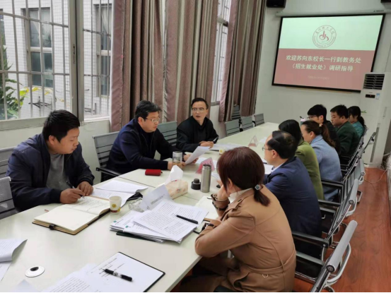 本网讯(教务处 罗敏)10月28日下午, 党委副书记、校长苏向东,副校长张开智到教务处(招生就业处)调研教学管理等工作。