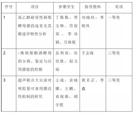 食品药品制造工程学院11月11日,全国大学生生命科学竞赛委员会第五届全国大学生生命科学竞赛成绩公布,食品药品制造工程学院参赛队获得一等奖,同时获得三等奖2项。