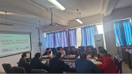 本网讯(机械工程学院吴艳英)12月1日,校纪委书记、监察专员贺梦依到机械工程学院开展调研。机械工程学院党总支书记熊远兴、院长周知进、副院长袁森及学院各科室、中心负责人、教师代表参加会议。
