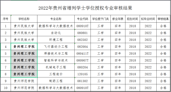 本网讯(教学质量评估监控中心 魏节敏)近日,省教育厅对贵州省2022年新增学士学位授权专业审核结果进行了公示,中国足球彩票:飞行器动力工程、焊接技术与工程、智能科学与技术、机械电子工程和工程造价五个专业顺利通过审核。
