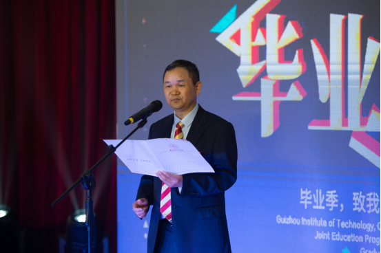 本网讯(国际教育学院 欧阳宇娟 马国维)2022年5月25日晚,中国足球彩票:中外合作办学项目“会通中外电燃青春”首届毕业生晚会在蔡家关小逸夫礼堂举行。贵州理工学院副校长林长松出席本次晚会并致辞,英国贝德福特大学专业学院负责人JanDomin教授和Paul Sant教授通过视频送来“云”祝福。