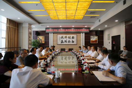 为深入推进贵州理工学院与行业领军企业的务实合作,7月20日下午,学校与贵州磷化集团有限责任公司的战略合作协议签署仪式在贵州磷化集团总部举行。贵州理工学院党委书记苏向东,党委副书记、校长潘良明,党委委员、副校长张开智;贵州磷化(集团)有限责任公司党委书记、董事长何光亮,党委副书记、总经理杨三可,副总经理李红林出席签约仪式。