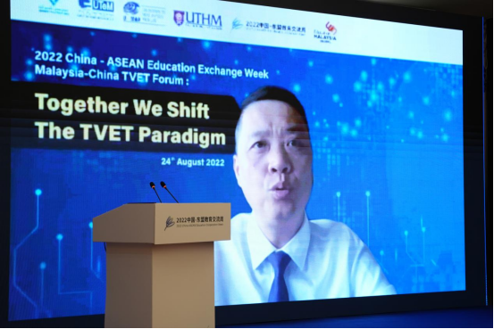2022年8月24日,由马来西亚驻华大使馆教育处主办,贵州理工学院、马来西亚科技大学联盟(MTUN)共同承办,马来西亚驻南宁总领事馆支持的“第二届马中(贵州)教育合作论坛”在中国-东盟教育交流周永久会址举行。本次论坛以“共同转换职业技术教育与培训的范式”为主题,探讨“为未来革命推进职业技术教育与培训:挑战与机遇”及“加强院校和企业伙伴关系以实现有效的职业技术教育与培训”,共同分享中国及马来西亚科技大学联盟在改革职业技术教育与培训方面的主要做法及成功经验,共同探索培养新时代技术和技能人才教育改革路径,共同谋求培养新时代技术和技能人才的合作与发展。论坛以线上线下相结合的方式举行。