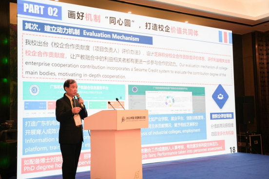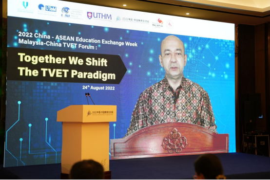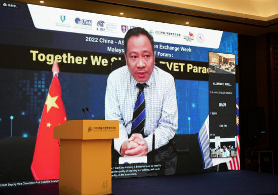马来西亚彭亨大学副校长罗斯里教授就市场对职业技术教育与培训创新的需求、制度影响和展望进行了分析和建议,对职业教育与培训的发展具有建设性的指导意义;河北工业职业大学副校长韩提文教授分享了河北工业职业大学在新时代高职教育国际化实践探索方面的政策、做法和愿景;马来西亚马六甲科技大学副校长祖基菲里教授结合马来西亚职业技术教育与培训相关标准,就学生的学习目标、学习模式、学习效益、等方面对工作本位学习概念和实践进行了具体阐述;马来西亚职业教育与培训研究所所长拉沙里博士介绍了职业技术教育与培训方面政府和产业合作好的做法和经验;浙大城市学院继续教育学院童晓明院长分享了该校在教育培训事业方面经多年探索形成的广受瞩目的教育培训“城院模式”;广东机电职业技术学院校长郑伟光聚焦问题导向,从平台、机制、团队三个同心圆,介绍了该校长期以来在推动产教融合命运共同体建设方面的探索实践和取得的成绩;马来西亚玻璃市大学副校长莫哈末·尤索夫教授介绍了该校在大学职业技术教育与培训中心在职业培训与教育方面好经验与好做法,以及马来西亚职业技术教育与培训成本方面遇到的挑战;贵州轻工职业技术学院校长武斌儒教授从该校建设总体思路、典型范例、建设成效与标志成果三个方面,阐述了“一个坚持、两个服务、两个引领、三个品牌”的创新、协调、绿色、开放、共享”的发展理念;马来西亚英特尔设计中心战略工程总监帕里德;湖南开放大学副校长吴敏教授从职业教育理念创新、教育对象和教育内容形式上的开放三个方面,分享了开放式职业教育在湖南的实践与展望;马来西亚敦胡先翁大学副校长阿兹米;长沙民政职业技术学院副校长王庆国从调整专业、合作资源、产教融合平台、引入输出四个方面,阐述了长沙民政职业技术学院在深化产教融合校企合作走深走实、构建校企命运共同体方面的好经验和做法;马中关丹工业园联合钢铁(大马)集团公司副总经理潘传夏的分享让与会人员充分了解了企业和市场的需求;湖南省职业技能培训协会会长陈碧华教授从整合资源,搭建平台,人才培养,专家智库、校企合作、产教融合创新发展等方面,阐述了协会“政行校企”产教融合人才培养共同体的湖南模式;贵州装备制造职业学院校长金焱从技能型社会和技能贵州两个角度阐述了该校技能人才培养的多渠道方式、计划和展望。