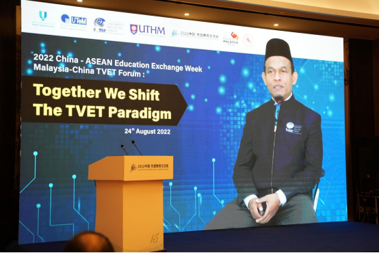 马来西亚彭亨大学校长尤斯里在闭幕式上致辞。他说,中马双方高校在职业教育的发展上有相同的目标,希望通过此次会议,中马双方高校继续依托地缘、人文、学科等优势,从聚焦职业教育人才培养,推进校企合作,打造交流平台,拓宽交流领域等方面着手,不断推进双方职业高等教育合作迈上新台阶。