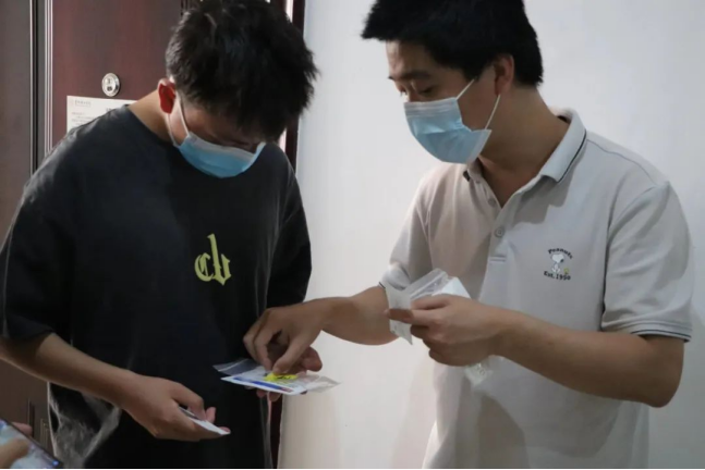 9月4日恰逢周末。早上8点,学校将开展第二轮全员核酸检测。李刚心里不禁有几分担心,周末没课,有些同学肯定要睡睡懒觉。为确保全员覆盖,不漏一人,李刚把学院的学生党员兵分三路,分别提醒每个宿舍的学生按时去做核酸检测。他与其他老师在楼下用喇叭喊话。关键时刻,党员就是先锋!在师生的有力配合下,第二轮核酸检测进展比较顺利。采样结束后,李刚与班主任老师再次走访学生宿舍,确认每位学生都完成了核酸检测。此时他的嗓子已有点嘶哑,但心安然。