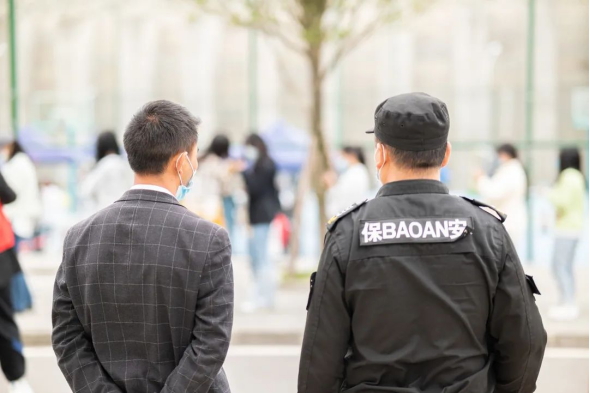 蔡家关校区,六名保卫干部驻守学校,实行保卫干部蹲点负责制,保卫干部和保安队长现场指导监督保安员履职尽责,严格贯彻执行学校疫情防控领导小组的工作指示要求。