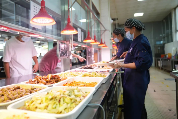 每天凌晨4:30,当同学们还在睡梦中,学校食堂的灯却已经亮了。9月3日,学校进入准封闭管理,两校区241名餐饮员工每天要为学校12000多师生提供餐饮保障。种类丰富的饭菜、有条不紊的备餐,靠的是未雨绸缪5-7天的食材储备,靠的是周全的应急保障预案和所有工作人员的努力。在接到封闭通知前,后勤管理处膳食科全部管理人员投入到一线保障,确保每个食堂均有1名管理干部在内统筹协调,带领一线餐饮员工做好供餐保障。