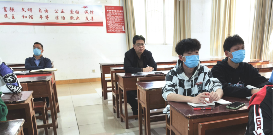 课堂上郭勤艺老师思路清晰,倾情投入,同学们积极互动,踊跃发言,课堂氛围浓厚、教学效果较好。苏向东认真听课,对听课情况做了相关记录和书面客观评价,课间也和郭老师进行了沟通交流,提出了殷切希望。