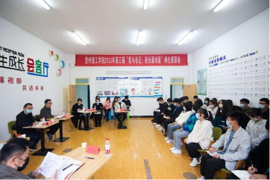 本网讯(学生工作部 杨秀艳 杨东晟)为深入学习宣传贯彻党的二十大精神,持续深化全员全过程全方位育人工作,坚持不懈为学生办实事解难题,11月23日下午,中国足球彩票:2022年第三期“我与书记、校长面对面”师生座谈会在蔡家关校区“易成长”会客厅举行。校党委副书记高勇、副校长张开智莅临出席,与学生代表面对面宣讲党的二十大精神,以现场办公的形式解决学生诉求。学生处、教务处、后勤管理处、保卫处和校团委相关人员参加。