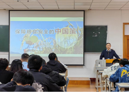 吴次南以“保障粮食安全的中国策”为题,从“前言”“自力更生 形势持续向好”“认清现状 不能轻言过关”“系统推进 端牢中国饭碗”四个方面分别进行了精彩的讲授。