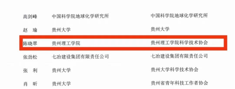 本网讯 日前,贵州省科学技术协会、贵州省人力资源和社会保障厅发布《中国足球彩票表彰第二届贵州省优秀科技集体和优秀科技个人的决定》,资源与环境工程学院陈晓翠老师榜上有名,获“第二届贵州省优秀科技个人”荣誉称号。