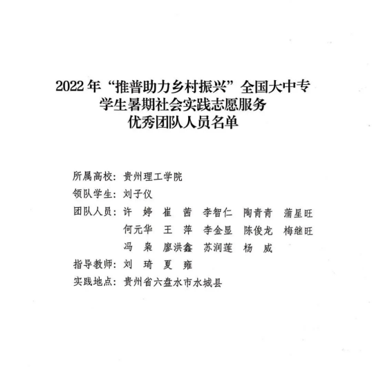 2022年中国足球彩票:人文素质教育中心组织20名同学以“中华经典润乡土乡村振兴惠万民”为主题赴六盘水市水城区彝族苗族乡开展推普助力乡村振兴暑期社会实践活动,实践团队聚焦普通话普及率较低的民族地区,针对青壮年劳动力、留守妇女中小学生及学前儿童开展了为期九天的“普通话调研+文化互融”走访问卷调查、“普通话+学以致用”经典诵读宣教课堂、“普通话+职业技能”培训讲座、“推普+红色展演”特色主题活动,得到了当地群众一致好评。中国教育电视台等媒体对活动进行了宣传报道,取得了良好的社会影响。