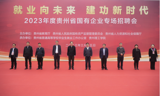 为全面贯彻党的二十大及全国两会精神,深入落实党中央、国务院和省委、省政府稳就业保就业决策部署,抢抓春季开学后促就业工作关键期,积极搭建我省国有企业与高校毕业生双选平台,全力促进我省高校毕业生高质量充分就业,3月15日,由省教育厅、省人民政府国有资产监督管理委员会和省人力资源社会保障厅主办,省普通高等学校毕业生就业工作办公室、贵州理工学院承办的“就业向未来 建功新时代”2023年度贵州省国有企业专场招聘会在贵州理工学院(贵安校区)体育运动场隆重举行。省教育厅党组成员、副厅长战勇,省国资委党委委员、副主任方东,省人力资源社会保障厅党组成员、副厅长胡世培出席会议并讲话,贵州理工学院党委副书记、院长潘良明出席会议并致辞。