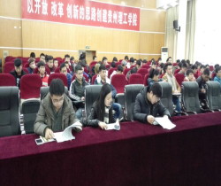 2015年12月29日,航空航天工程学院在喀斯特报告厅举行2015-2016学年第一学期期末考试考前师生动员会。本次大会以“文明考风,诚信考试,严格监考”为主题,落实学校教务处考试通知的安排。学院执行院长陈海虹以及学院老师参加本次动员大会。