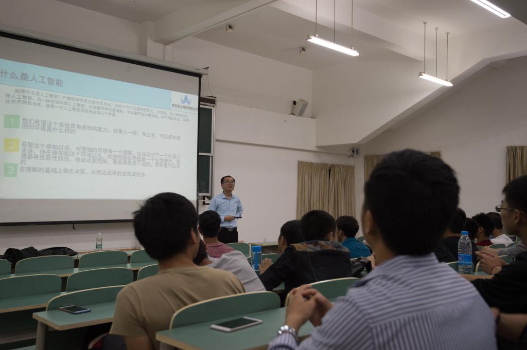 龚博祥讲述了从来到贵州大学求学,与贵州结缘,到硕士研究生毕业选择留在贵州成为“贵漂”的创业奋斗历程,分享了创业的经验与成就,体现了其乐观、坚持、敢于创新、迎难而上的励志精神,呈现出一条当代大学生的创业之路。在校期间,他创办了贵州首家大数据和“互联网+”领域的高校众创空间——六度创客工场,创办了贵州溪山科技有限公司,并带领小伙伴们先后获得2014年“创青春”创新创业大赛贵州省银奖,首届盐商杯全国青年创新创业大赛贵州省第一名,首届“互联网+”全国高校创新创业大赛贵州省金奖,2015年度贵州省创客新锐“十佳创客团队提名奖”,2014年度贵州省大学生创业之星,荣获2016年度“全国创业英雄”称号,2016年全国向上向善好青年提名。担任贵州唯一的全国大学生创新创业联盟常务理事、首届贵州省“贵安杯”青少年3D打印创意大赛评委、2017年第三届中国大数据博览会“智能制造与大数据”高峰论坛主讲嘉宾。他把创业比作投篮,光顾用力投球没有瞄准方向或是光瞄准方向而没有把握力度都不能成功破篮。与同学们的有效互动中,他激励同学们在大学期间要有一个持之以恒的信念坚持到底,要有一份热情和激情憧憬未来,要有一双善于发现的眼睛寻找机会,创造无悔青春,书写青春时代。