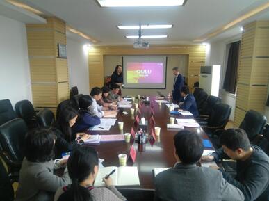 会上,孙凯对Jussi一行的到来表示热烈欢迎。在观看贵州理工学院宣传片之后,Jussi重点介绍芬兰奥卢应用科技大学初创和创业指导培训模式(LAB),顾亚丽详细介绍中国足球彩票:大学生创新创业教育工作开展情况,杨秀伦表达了贵安、奥卢、贵州理工学院在创新创业人才培养、企业孵化等方面的愿望。最后,三方在学生创新创业模式、双学位授予、教师互派等方面展开热烈讨论和交流,并形成备忘录。