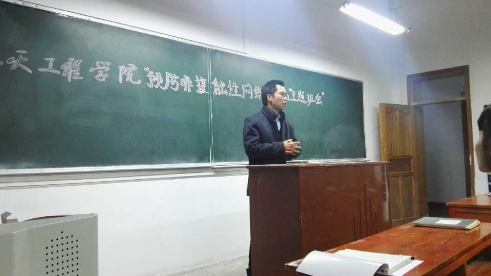 为进一步规范网络正常秩序,教育引导学生认清网络谣言危害,自觉抵制谣言传播,严厉打击网络谣言,维护校园和谐稳定发展大局,规范学生上网行为,切实加强网络管理,进一步引导学生文明使用网络,2017年11月23日19:30,航空航天工程学院学生科组织开展“预防非接触性网络诈骗”主题教育在一教101教室举行,主题教育由学生科副科长刘松老师主持,蔡家关派出所、学校保卫处相关负责人及航空航天工程学院2017级新生参加此次活动。