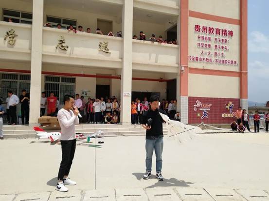 学院航模队的学生为六马中学师生进行现场航模表演,并为大家进行航模知识科普。