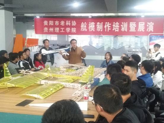 (本网讯 图/陈玉飞 文/李家兴)为提高学生对航模原理、结构、组成等问题的认识,让同学们更好地完成航模设计方案,航空航天工程学院在11月10日上午在学校第三实验楼无人机实验室开展航模制作培训活动。贵阳市老科协航模队谢光清、徐宁等9位老师、航院党总支书记李青出席本次培训会,全校参赛队员参加培训会,本次活动由杨登红老师主持。