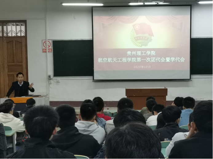 (本网讯 图文/陈玉飞)10月29日中午,航空航天工程学院在蔡家关校区一教召开团学代表会议,选举我院首届共青团贵州理工学院团代会、学代会代表。会议由学生科刘松老师主持,学院党总支书记李青出席会议,17级、18级、19、20级各班学生代表参加本次会议,校团委组织部工作人员负责纪检监察。