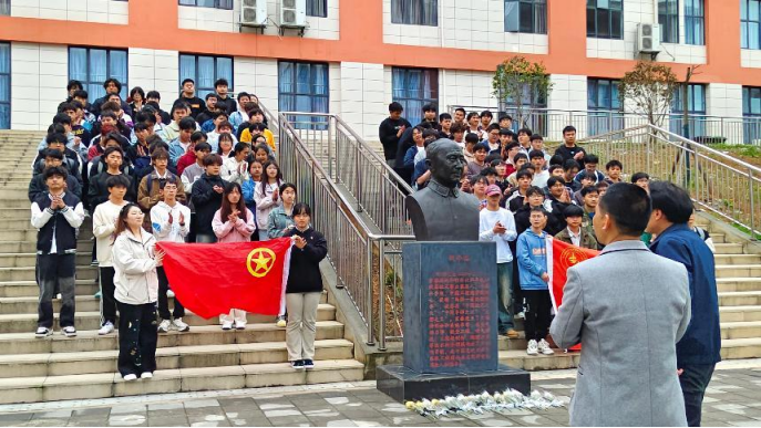 活动现场,全体团员青年庄严肃立,向钱学森雕像敬献鲜花,鞠躬致意,表达对这位“中国航天之父”的崇高敬意与深切缅怀。随后,学院团委负责人刘松老师饱含深情地讲述钱学森毅然归国、投身祖国航天事业的光辉事迹,其爱国情怀与卓越贡献深深感染着在场每一个人。