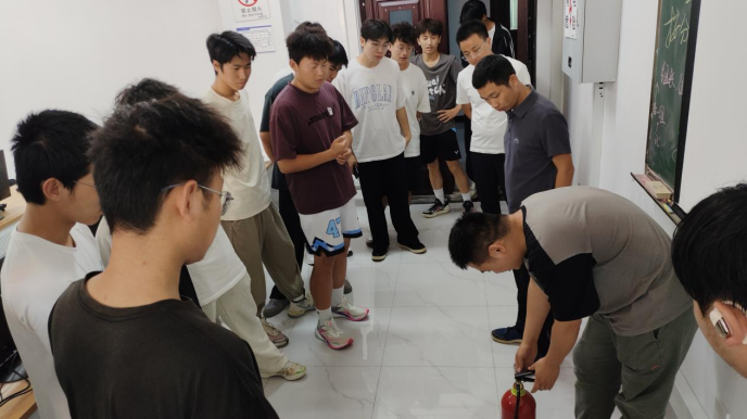 随后,董清清老师介绍了干粉灭火器和二氧化碳灭火器的差异、适用场景及正确使用方法。干粉灭火器适用于扑救一般可燃固体火灾,以及油、气等燃烧引起的火灾,通过化学抑制作用使燃烧链反应中断来灭火。二氧化碳灭火器则主要依靠窒息作用和部分冷却作用灭火,适用于扑救贵重设备、档案资料、仪器仪表、600 伏以下电气设备及油类的初起火灾,灭火后不留痕迹。董老师现场示范了“一提、二拔、三握、四压”的灭火器操作步骤,并邀请师生亲身体验,通过模拟灭火确保大家技能熟练。
