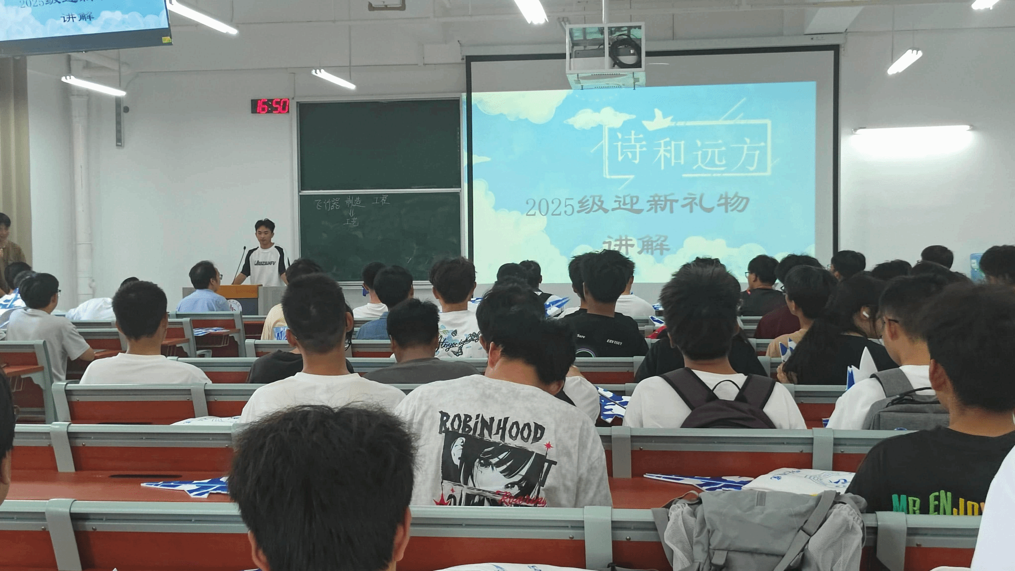 本网讯(航空航天工程学院 图/于茂竹、袁伟林、石璐 文/袁伟林)为助力新生迅速了解专业内涵、融入学院集体,2025年9月18日下午,航空航天工程学院组织开展了新生入学教育活动,并同步举办了新生成长礼品发放仪式,为新生开启航空航天探索之旅增添动力。