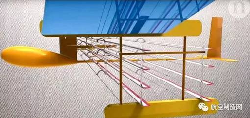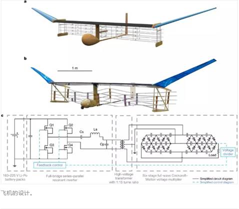 最令人称奇的是,它的“离子发动机”是悬挂在机翼下的两排八列电线/翼型电离器,可以在超高压电源转换器制造的4万伏高压下,将氮气和氧气电离,从而产生了每千瓦5牛顿的推力,与喷气发动机的输出功率相当。