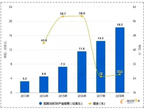 据前瞻产业研究院测算,2018年我国增材制造产业规模有望达到18.3亿美元左右。另据中国增材制造产业联盟统计,2018年中国增材制造产业增速维持在25%以上,同时提供增材制造服务的企业数量已经超过500家。