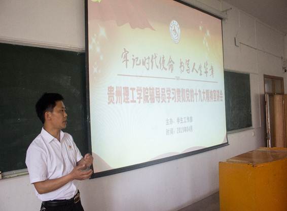 本网讯(航空航天工程学院刘松/文徐瞻/图)为提高同学们的政治思想觉悟,增强爱国意识,贯彻落实学校评估有关文件精神要求,营造良好学风班风校风和学习生活氛围,2019年4月10日,由学生工作部主办、航空航天工程学院承办“牢记时代使命·书写人生华章”辅导员校园宣讲会在1教311教室举行,此次宣讲会由贵州理工学院2017-2018学年优秀辅导员刘松老师主讲,航空航天工程学院2016、2018级140余名学生聆听了宣讲。