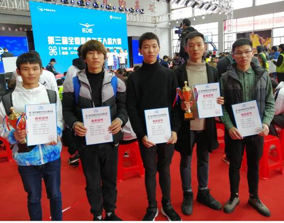 (本网讯 图、文/薛九天)2018年11月15-17日,第三届全国青少年无人机大赛在南昌航空大学举行。由航空航天工程学院2017级孙林松、赵雷、田义军、徐国强4名同学和电信学院17级的杜龙门同学组成的两支队伍参加了该赛事,均获大学组创意编程赛三等奖,陈霖周廷、薛九天和江维林获优秀辅导员。