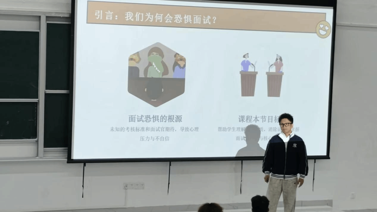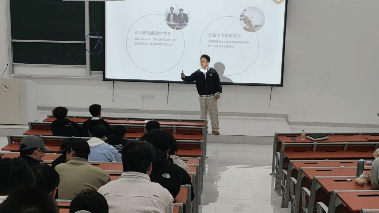 讲座中,校外指导老师结合丰富的企业招聘经验与职场案例,围绕求职面试的核心环节展开深度分享。从简历优化的关键技巧、面试礼仪的细节规范,到常见问题的应答策略、职业形象的精准塑造,老师均进行了细致讲解。与此同时,校外指导老师还讲解了超越穿着和礼仪的准备——深入研究面试官背景、打造个人价值宣言。除此之外,指导老师还着重讲解了AI的合理运用,让我们与AI协同作战吗,更高效地展示出自己的能力。