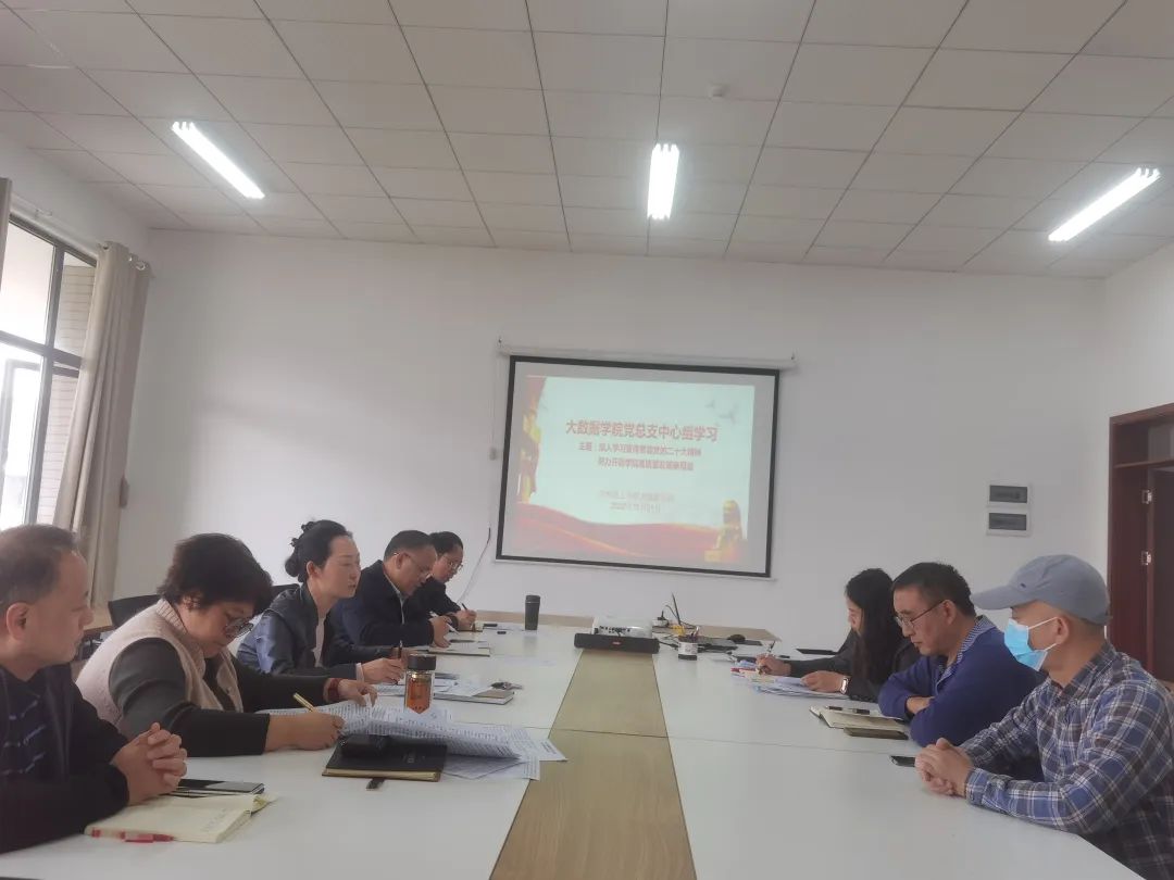 本网讯(图/文 石春梅)2022年11月1日,大数据学院党总支中心组在学院会议室开展主题为“深入学习宣传贯彻党的二十大精神 努力开创学院高质量发展新局面”的集中学习。党总支书记张艳主持,党总支委员、师生党支部书记、各科室负责人参加学习。