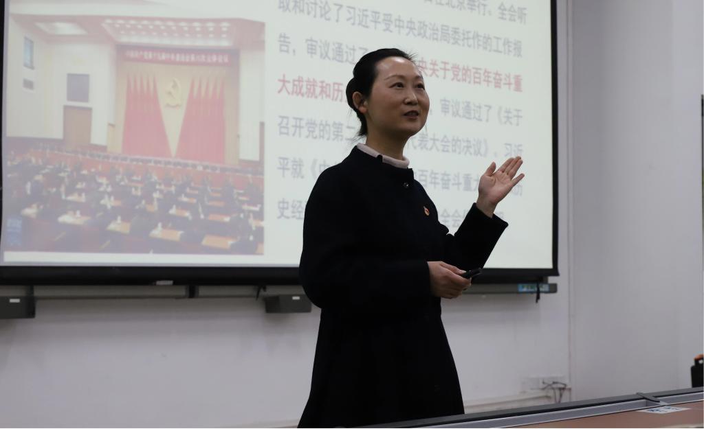 本网讯(大数据学院 文/郭光彬 胡伊琳 图/孔泷辉)2021年12月8日晚,大数据学院党总支书记张艳以《学习贯彻党的十九届六中全会精神牢记嘱托 感恩奋进 做贵州工业发展坚挺脊梁》为题在贵安校区G2108教室面向我院各年级学生代表开展宣讲,带领同学们深入学习领会党的十九届六中全会精神和贵州省委十二届十次全会精神。