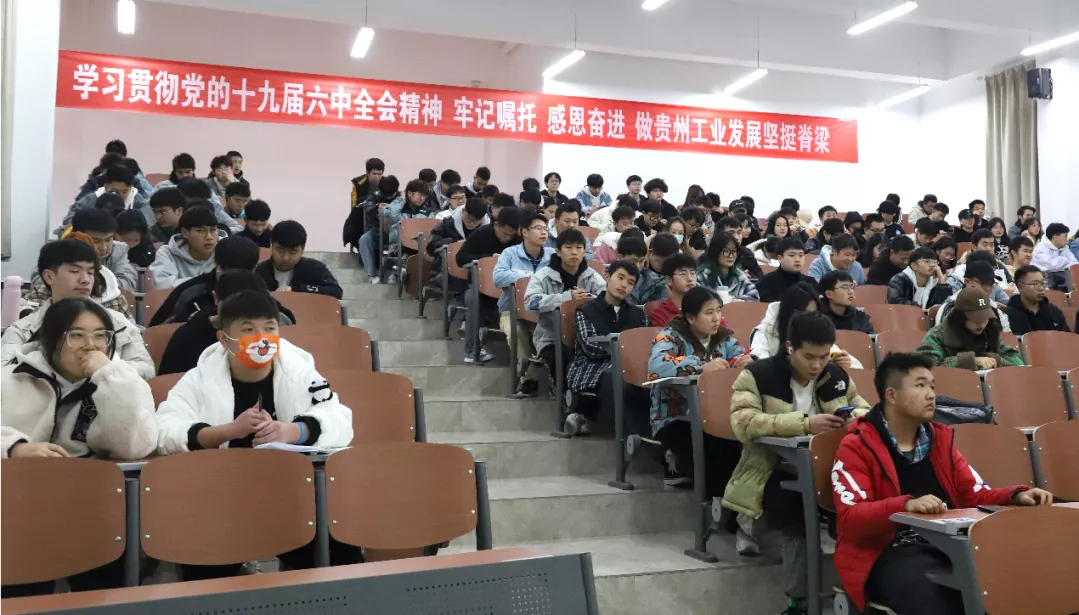 张艳书记希望同学们认真学习领会十九届六中全会精神,以扎实的理论武装筑牢思想根基,做到学党史、强信念、跟党走。树立远大理想、热爱伟大祖国、担当时代责任、勇于砥砺奋斗、练就过硬本领、锤炼品德修为,继承发扬“时不我待、只争朝夕、艰苦创业”的理工精神,牢记“知行至善 厚积薄发”的校训,自觉在全面建设社会主义现代化国家新征程中找准定位,把个人梦融入中国梦,切实肩负起时代赋予的责任和使命,跑好属于青年一代的“接力棒”,做贵州工业发展坚挺脊梁。