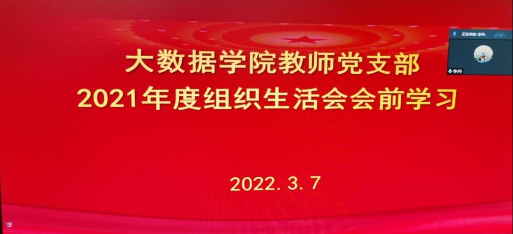 本网讯(图/文 张毅)在大数据学院党总支的统一部署下,大数据学院教师党支部于2022年3月14日下午在学院会议室召开2021年度组织生活会暨民主评议党员大会。党总支书记张艳、院长肖迎群、党总支副书记武斌、副院长杨仁增及教师支部全体党员参加,由支部书记杨琼主持本次会议。