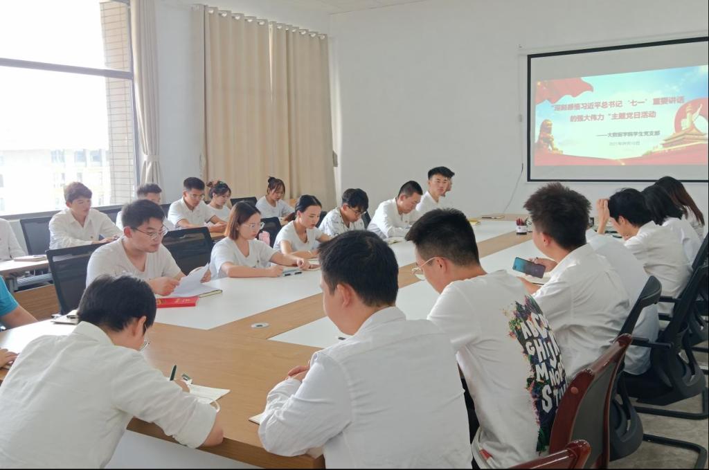 本网讯(大数据学院白凯雯)2021年9月10日,大数据学院学生党支部在学院会议室开展“深刻感悟习近平总书记“七一”重要讲话的强大伟力”主题党日活动。支部全体师生党员参加,支部书记石春梅同志主持会议。