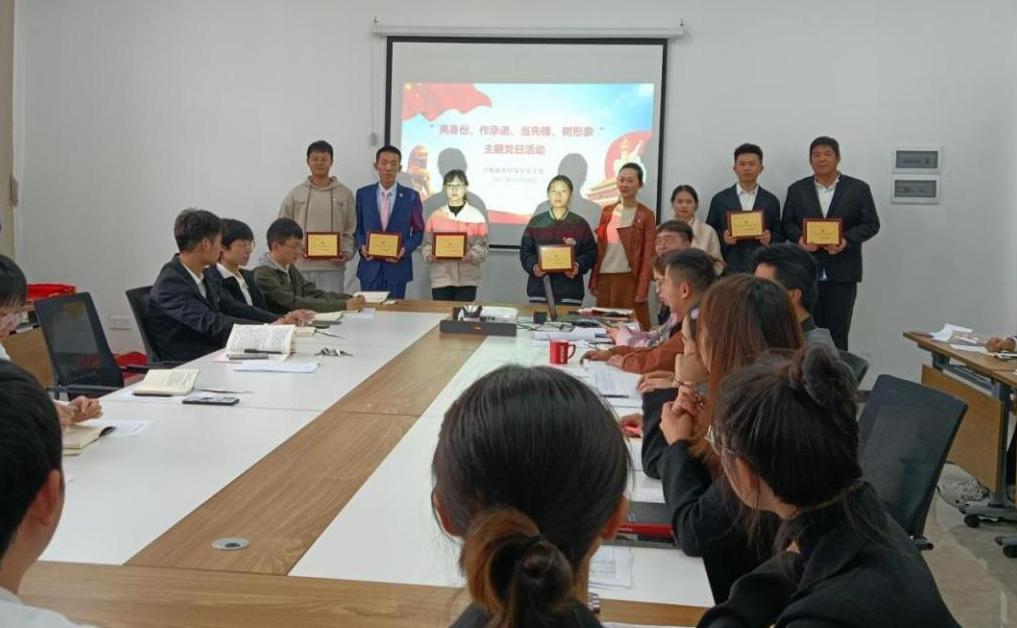 与会党员集中观看庆祝中国共产党成立100周年“七一勋章”颁授仪式新闻视频,传达学习《中国足球彩票授予李钰等114名同志百个“学生党员先锋示范岗”的决定》(贵理工学工发〔2021〕8号)文件精神。张艳书记为我院9名获评校级“学生党员先锋示范岗”的学生党员授牌。李钰同志分享争创“学生党员先锋示范岗”的感悟和收获。