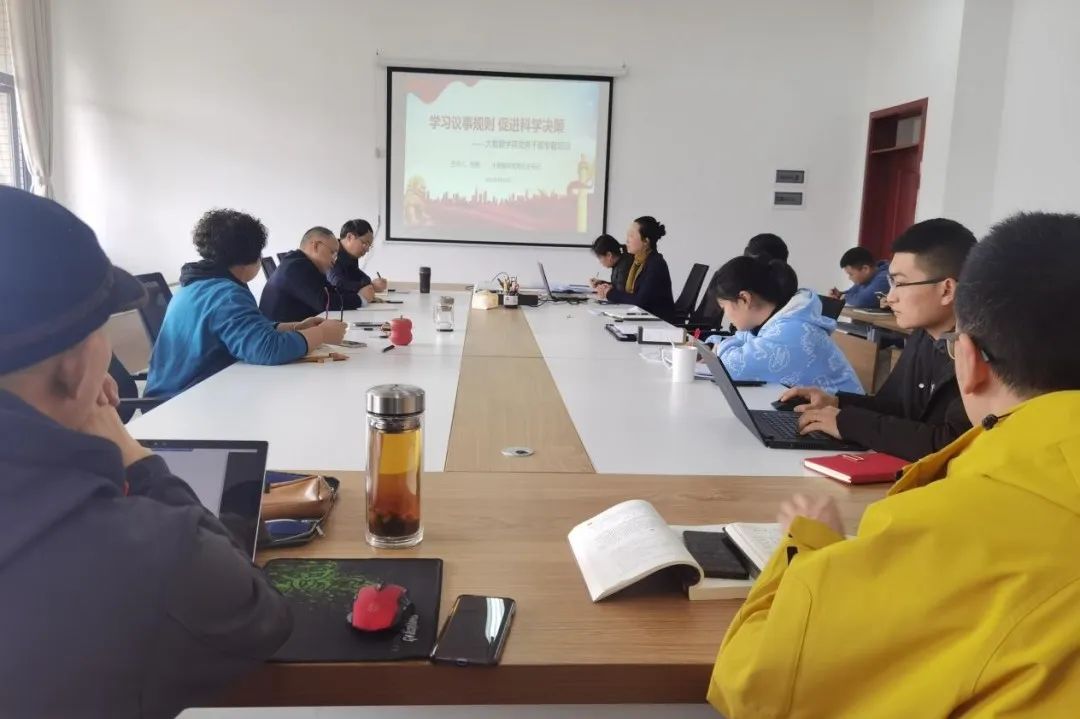张艳同志详细阐述了大数据学院党总支委员会议、党政联席会议议事决策范围、程序及上会材料注意事项,要求全体党务干部及各科室负责人加强理论学习、提高思想认识,全面掌握《大数据学院党总支委员会议议事规则》和《大数据学院党政联席会议议事规则》,熟悉会议程序,规范上会材料,做到准备充分、审核严格,为学院科学决策、民主决策、依法决策打下坚实基础。